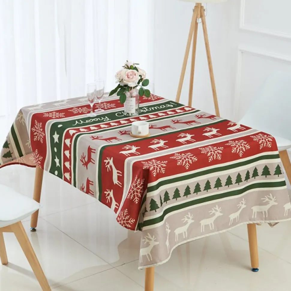 Cette nappe de Noël anti tâche est le choix idéal pour vos repas de fête. Fabriquée avec un matériau de qualité supérieure, elle est résistante aux tâches et facile à nettoyer. Profitez de votre dîner sans souci grâce à cette nappe pratique et élégante.