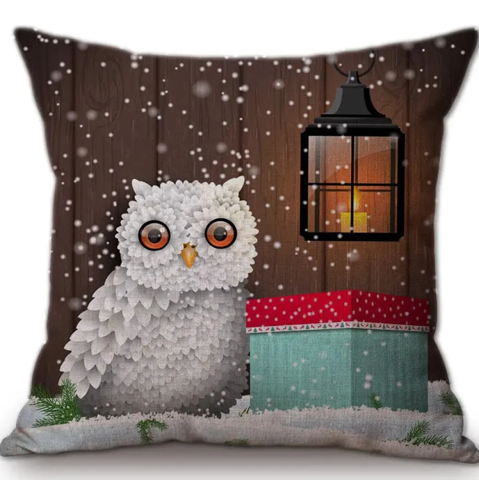 Housse De Coussin Hibou Neige